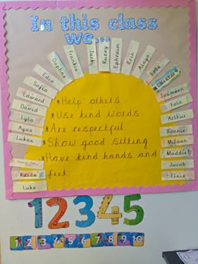 - Celebration of success: The school formally recognises achievement through positive reinforcement, such as headteacher's awards, phone call home, individualised call rewards, positive notes, celebration assemblies, and rewards like "hot chocolate Monday" and “Numbers time” with our dog mentor.