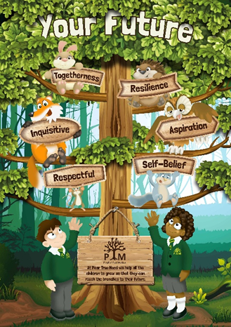 PTM has a vision statement that states – ‘At Pear Tree Mead we help all the children to grow so that they can reach the branches to their future’.
