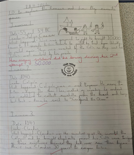 - Lower Key Stage 2: Students conduct enquiries into key periods like the Stone Age, Roman Britain and Anglo Saxons. They analyse and evaluate a wider range of sources to answer questions about change and use increasingly sophisticated historical terminology. Pupils’ are encouraged to use the language related to the eras and use these in their summaries. Pupils’ are encouraged to use sources of information in ways that go beyond simple observations to answer questions about the past.