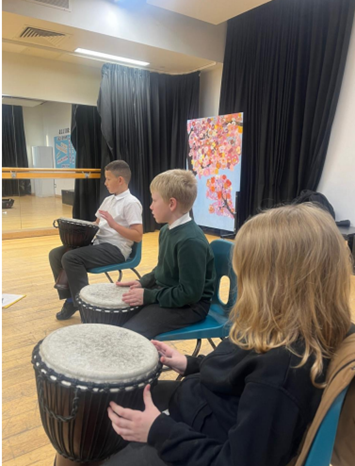 In the past, we have been invited to attend half-term after-school clubs at Passmores. The club started by having African drumming sessions. A small group of children attended and then took part in the Passmores show! We were really proud of them for performing in front of such a large audience.